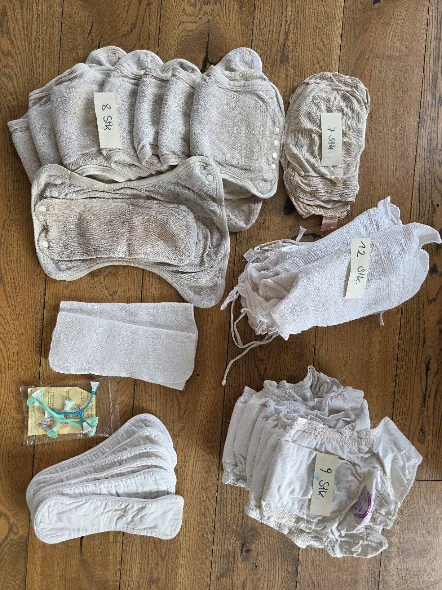 Die Windeln mit den Druckknöpfen haben Flecken innen und außen - lassen sich vlt ausbleichen in der Sonne, hab ich nicht ausprobiert.