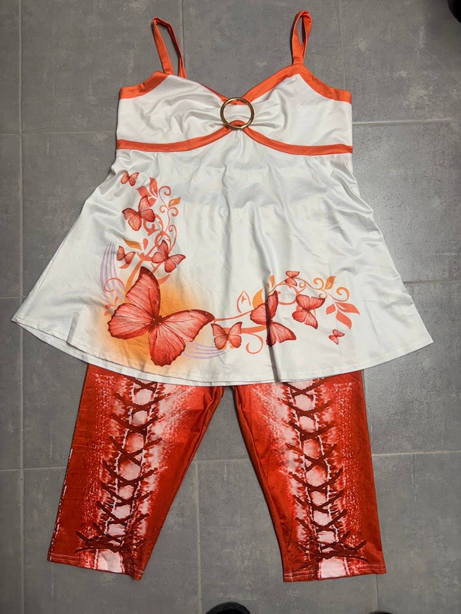 Verkaufe zwei ungetragene Strandoutfits in blau und orange (je eine Announce). Der Stoff ist der typische Badeanzugstoff, dementsprechend vermutlich schnell trocknend.