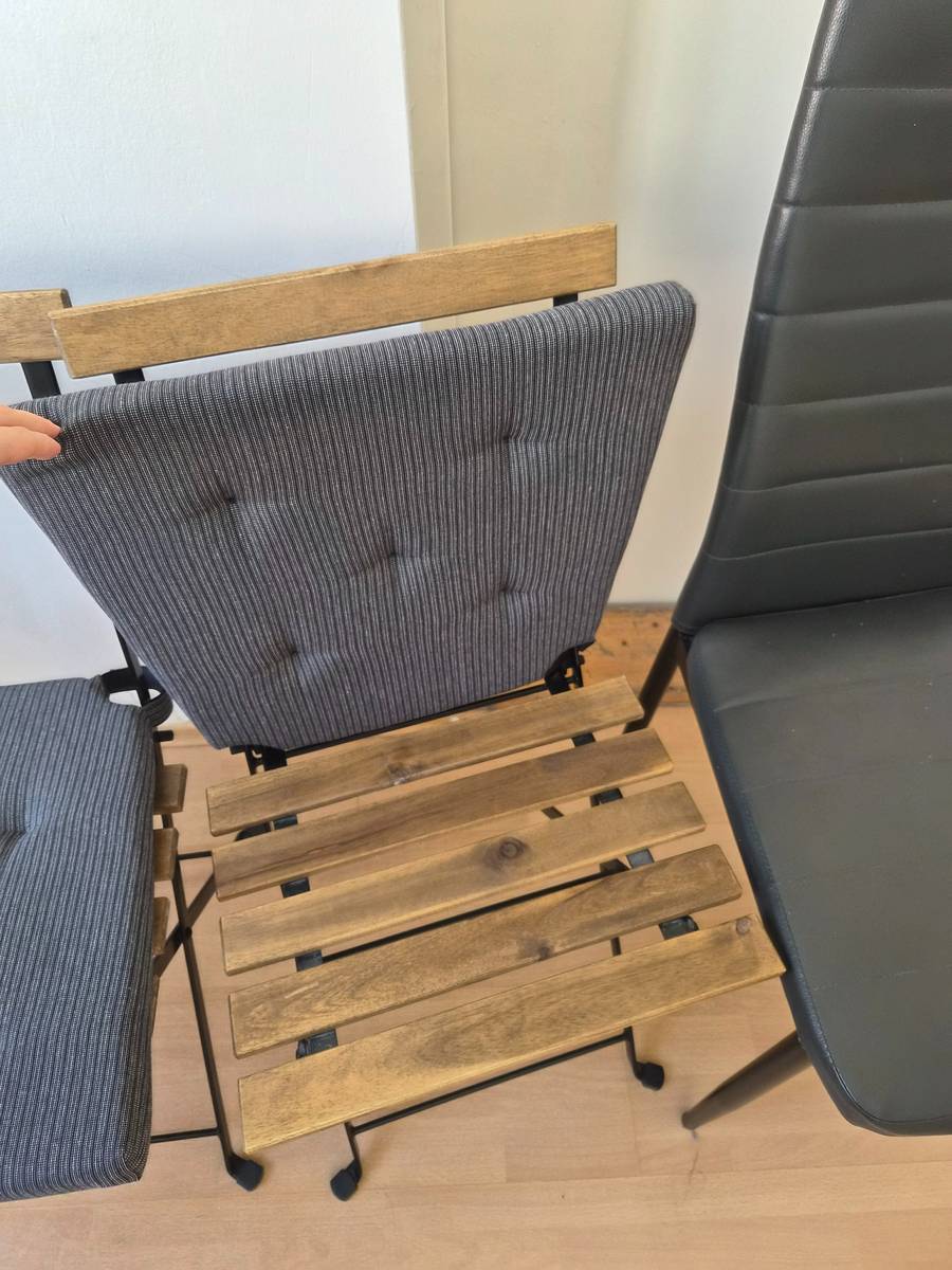 Der Stuhl auf dem Foto wackelt leicht, man müsste ihn etwas nachziehen/festschrauben.