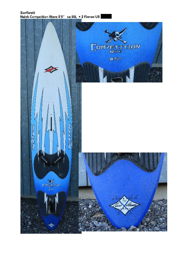 Surfbrett Naish Competition Wave 8’5’’ ca 80L, Länge 255cm + 2 Finnen US + Mastbase + Powerjoint