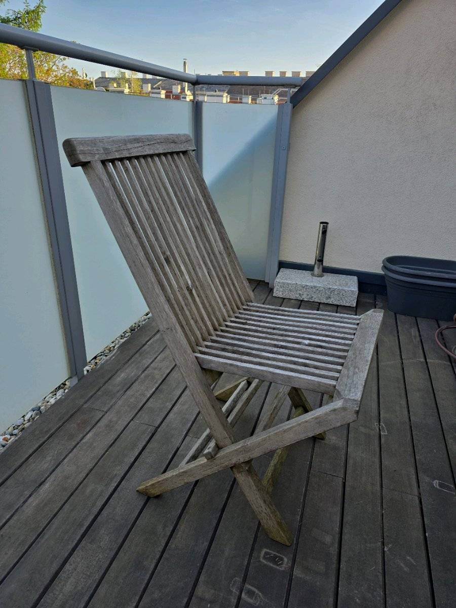 Bedarf an der jährlichen Ölung des Teakholzes. Dann sieht es wieder wie neu aus.