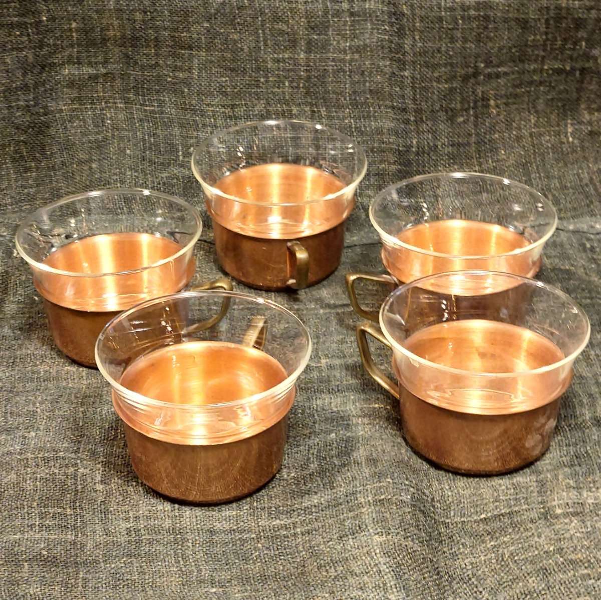 teetassen midcentury jena-glas und kupfer (5 stück)