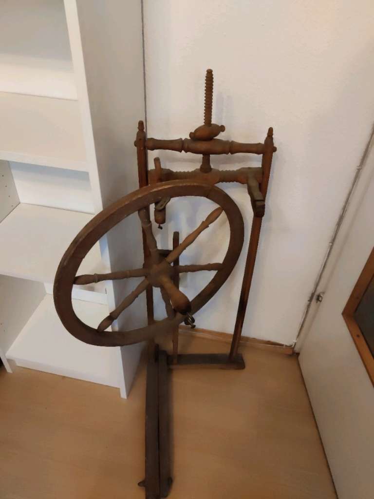 Teile eines alten Spinnrades