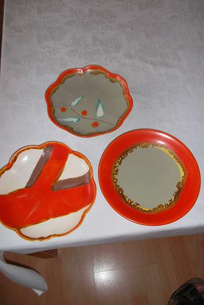 3) glatter Tand; rot,braun; grau; Marke:Villeroy&Boch;Mettlach;Made in