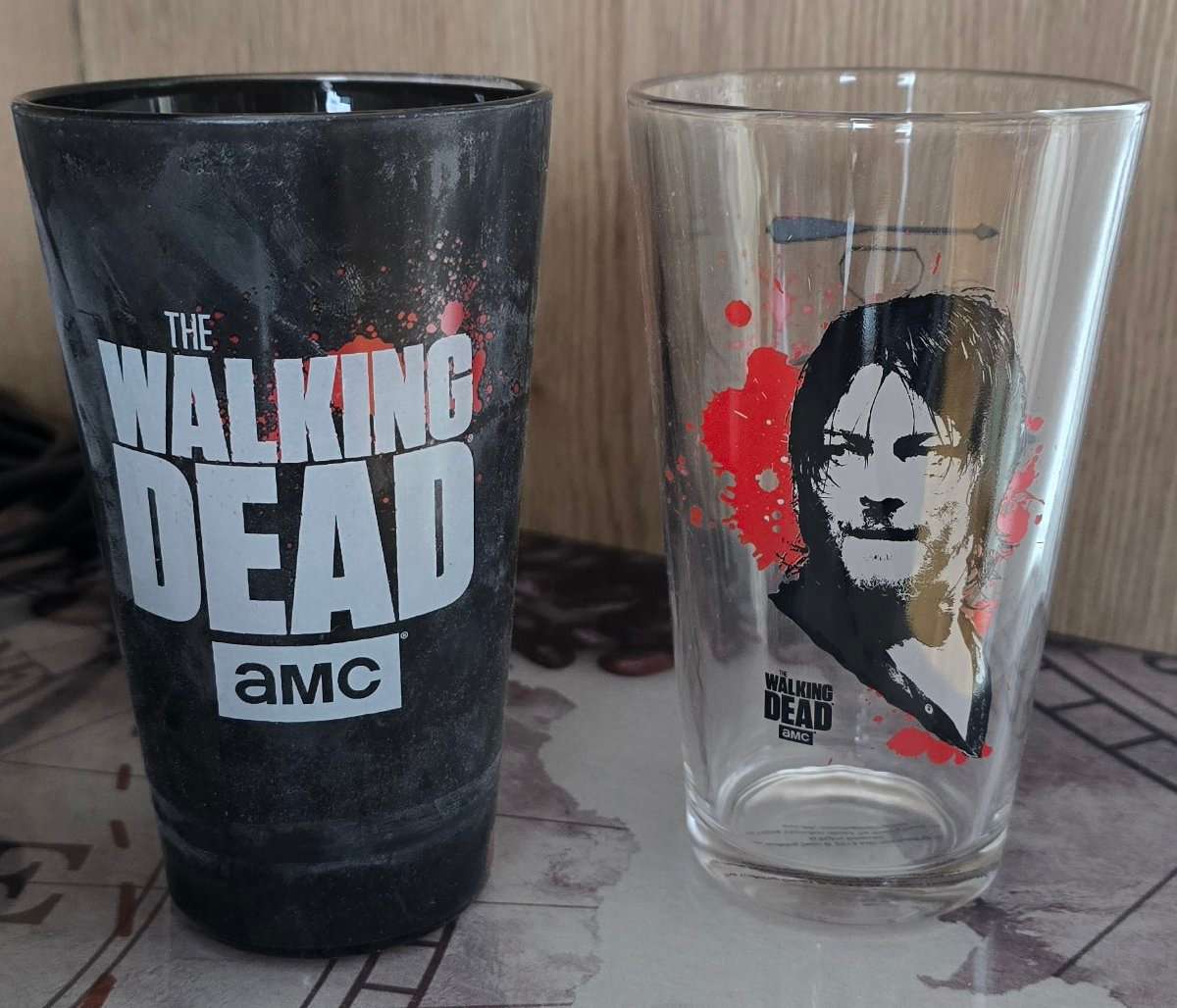 zwei große Gläser von The Walking Dead mit einem Daryl Dixon Motiv