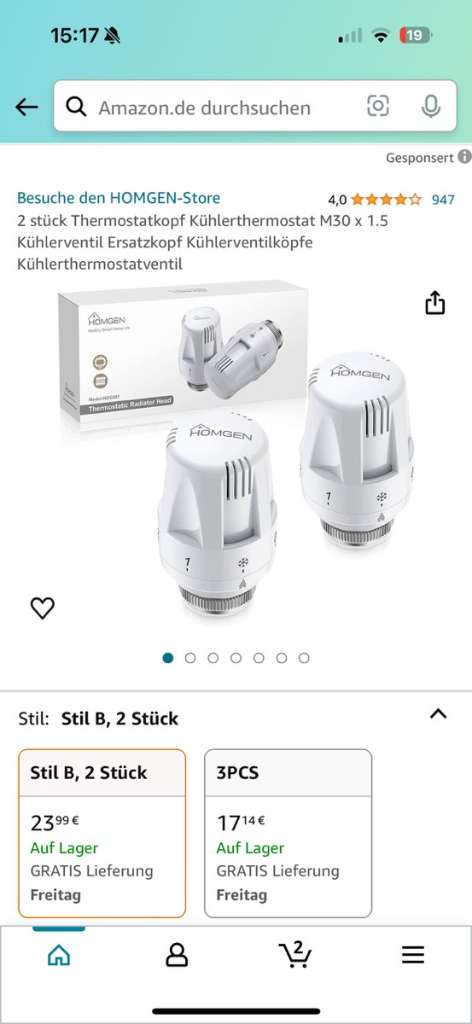 Homgen Heizkörperthermostat*----- Der Homgen Professional 2-teiliger TRV-Thermostatkopf-Heizkörper mit M 30 x 1,5-Gewindeanschlüssen und passend für 30 x 1,5-Gewindeanschlüsse von Heizkörperherstellern.