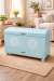 Diese charmante Runddeckeltruhe wurde in dezentem Blau mit leichten Mint - Nuancen aufbereitet und im Anschluss mit 2 dekorativen Mandalas an der Vorderseite versehen.
