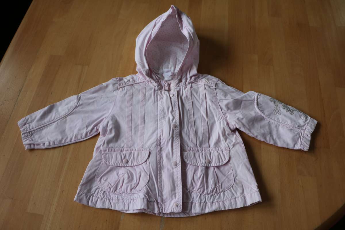Übergangsjacke mit Kaputze in hellem rosa mit Glitzeraufdruck am Ärmel