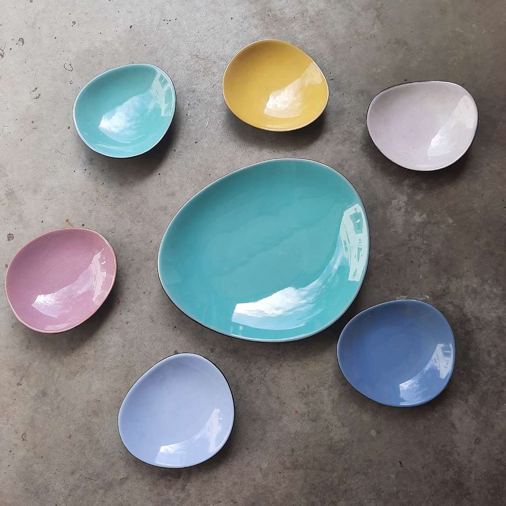 1 große und 6 kleine Schalen der dt. Firma Van Daalen aus den 50er/60er Jahren (ähnlich wie Keramos).