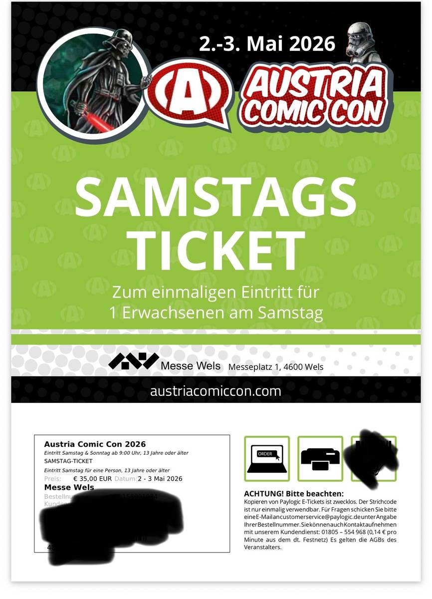 Verkaufe Tagesticket für die Austria Comic Con in Wels für Samstag 2 Mai!