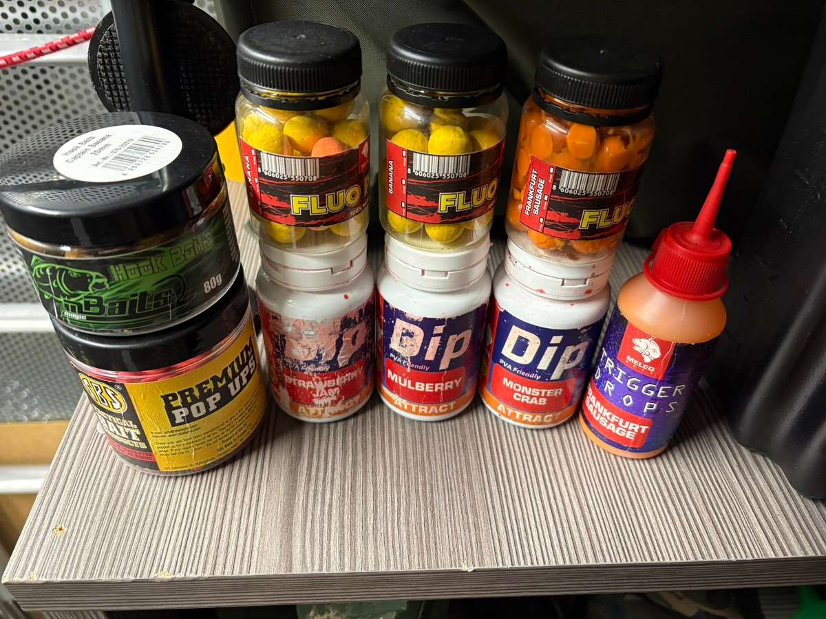 M1 Pop ups sind fürs Winterangeln Top aber werden von mir nicht verwendet. Banana Hookers sind auch da — unbenützt.