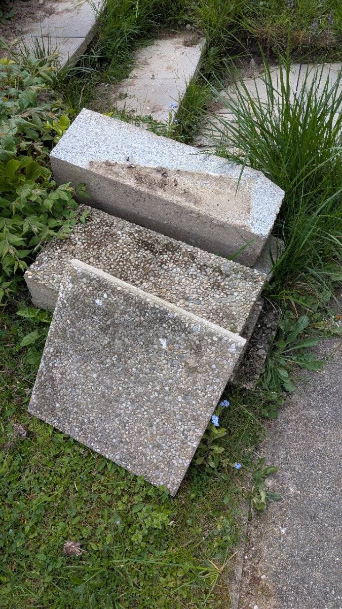 - 5 halbe Waschbetobplatten (50x25x4cm)