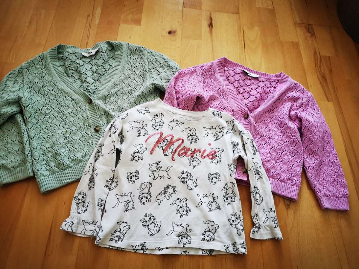 Langarmshirt: Gr. 104 schwarz, weiß, Schrift rosa