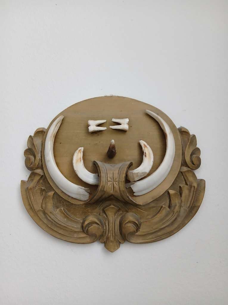 Sehr dekorative Wildschweinhauer auf Brett