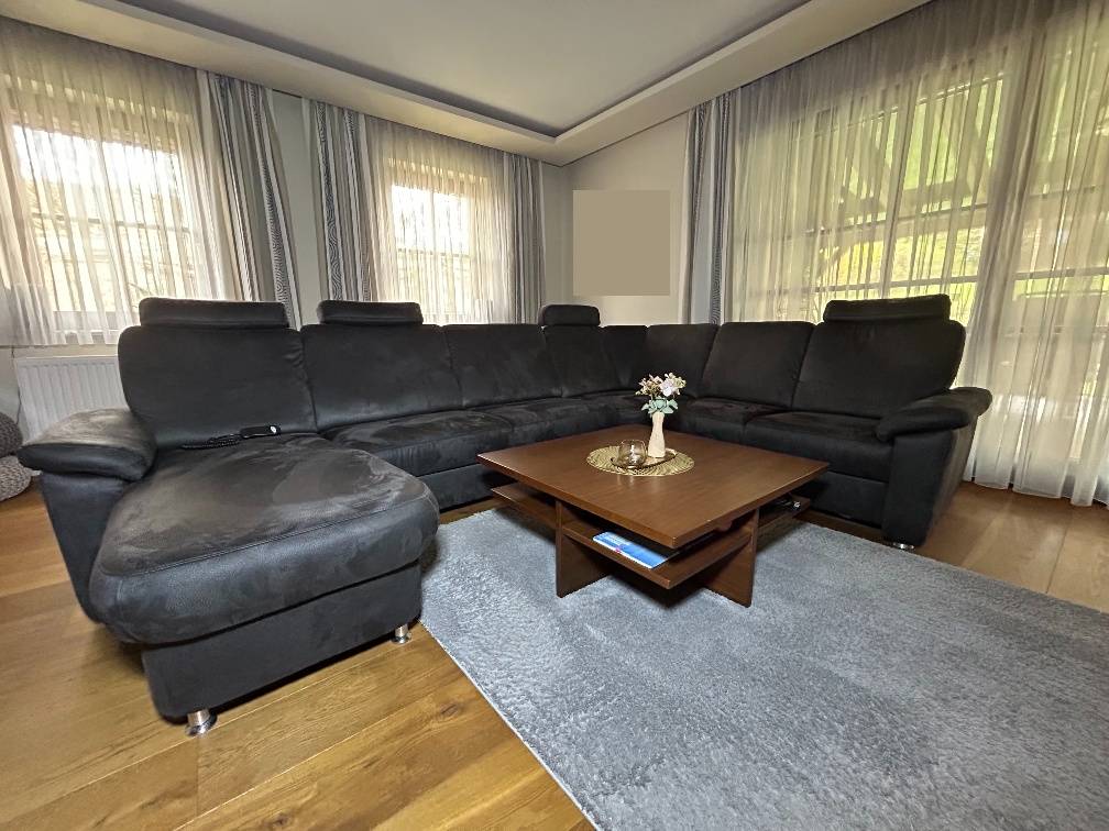 Dunkelgraue Wohnzimmer Couch ,,Velour''