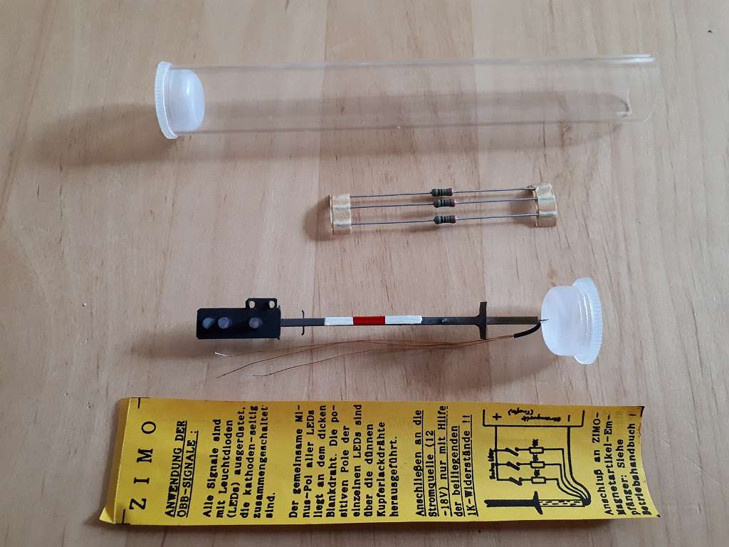 Mit 3 Vorwiderständen für die Led’s, lackierter Messingmast und Anleitung