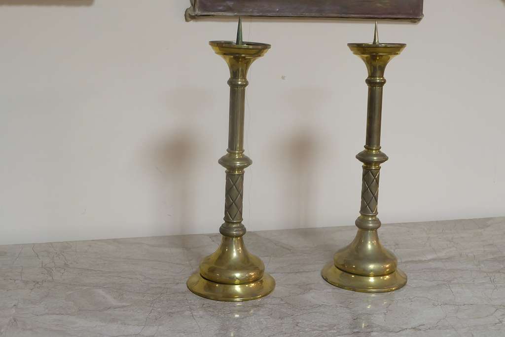 zwei sehr schöne antike Kerzenständer aus Messing, der Zustand ist authentisch,.