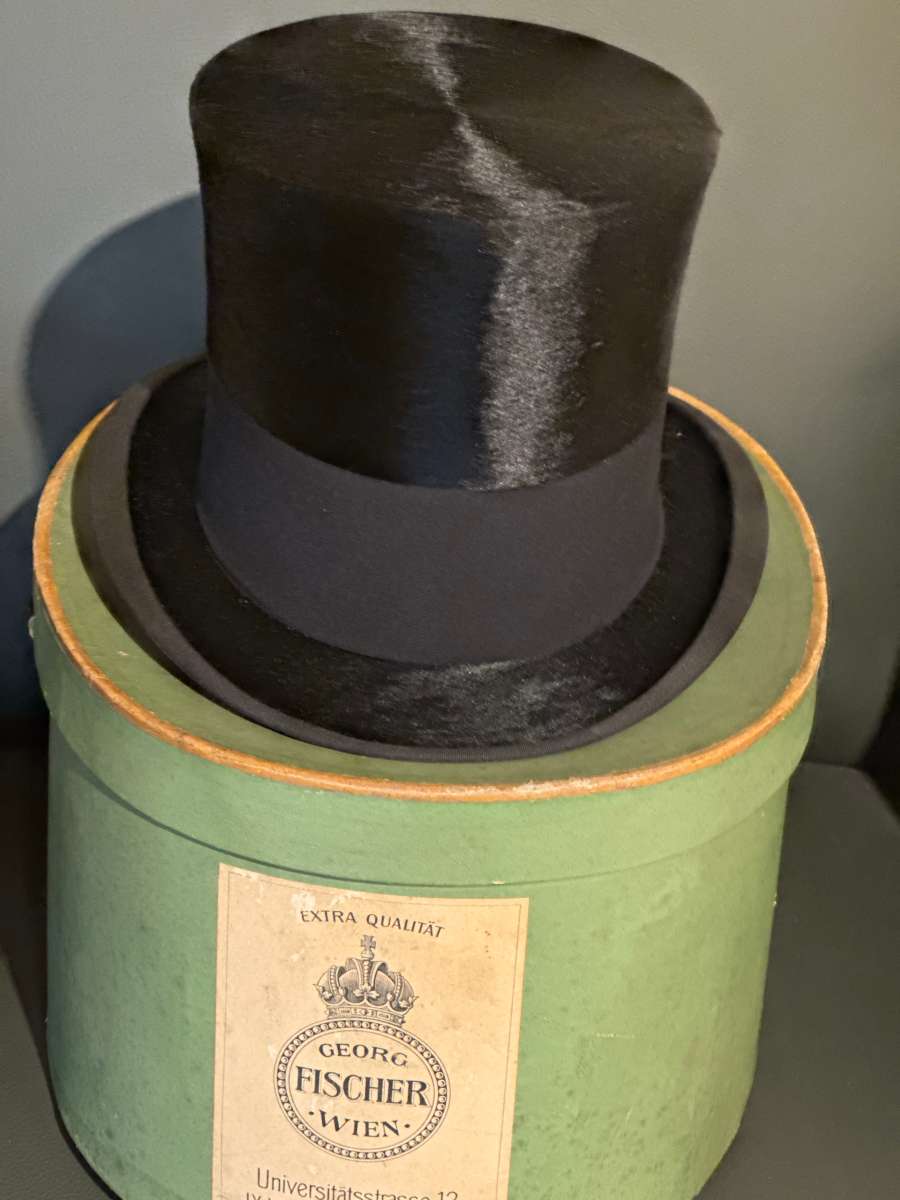 Ein edler Zylinder samt passender Hutschachtel aus dem Hause Georg Fischer steht für echte Wiener Handwerkskunst. Hochwertig gefertigt, stilvoll im Auftritt und angenehm zu tragen – ideal für feierliche Anlässe, besondere Momente und einen klassischen, souveränen Look mit Tradition.