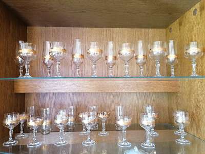 Weinglas, Sektglas, goldene Bordüre, antik