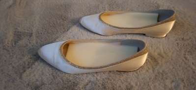 Ballerina in einem Beige mit goldener Bordüre