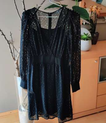 NEU: Festliches ESPRIT Chiffon Glitzer KLEID schwarz Gr. 32 langarm