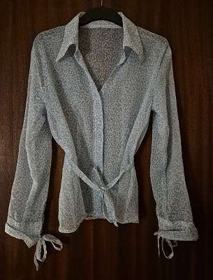 Langarm Chiffon Hemd / Bluse in weiß und blau, Gr. 38