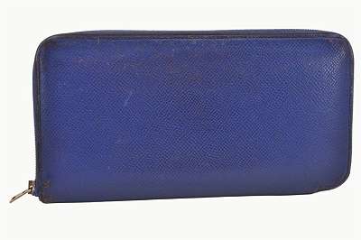 Original HERMÈS Azap Silk'In Brieftasche Epsom Leder Bleu Electrique Seide Geldbörse Portemonnaie Clutch Pochette Hermes