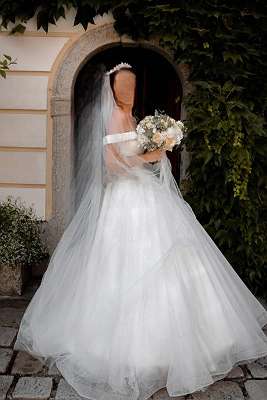Glitzer Brautkleid mit Schleier und Diadem!