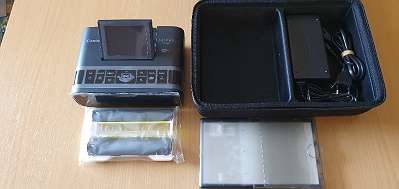 War ein Geschenk habe aber keine Verwendung dafür. Mit Tasche,2 Stück Farbpatronen,und 16 Stück Photopapier.