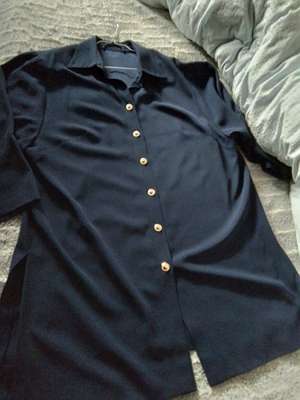 Damen Blusenjacke, Langarm, Größe 46/48, Oberweite 62 cm, Länge 85 cm, Goldknöpfe ( Hüte), 2 Schlitze, Farbe: Marine, Georgette, Massarbeit