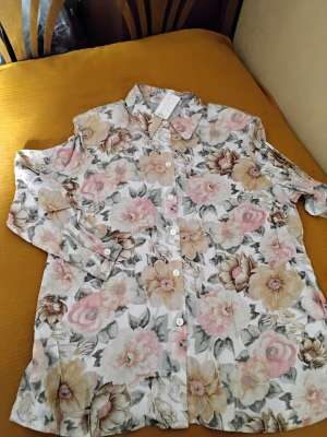 Damen Kragenbluse, Langarm, Größe 48, Oberweite 64 cm, Länge 75 cm, 2Schlitze, Viscose, Farben: natur, Lachs, beige.