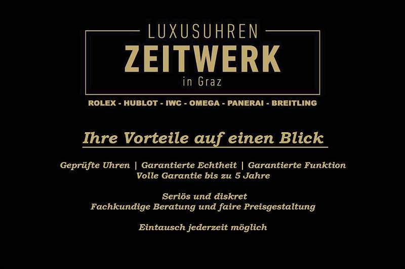 Das Unternehmen ?Zeitwerk? ist ein eingetragener Grazer Juwelier Betrieb, der sich auf den Verkauf von Luxusuhren spezialisiert hat. Zeitwerk Luxusuhren verkauft ausschließlich geprüfte und Zertifizierte Luxusuhren.