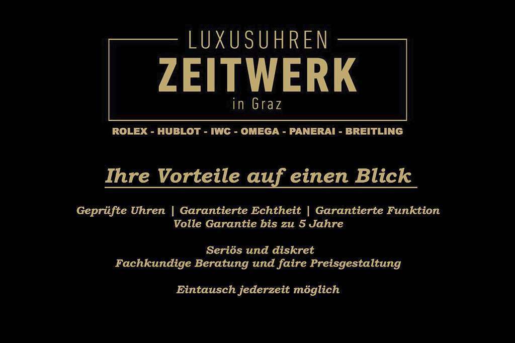 Das Unternehmen ?Zeitwerk? ist ein eingetragener Grazer Juwelier Betrieb, der sich auf den Verkauf von Luxusuhren spezialisiert hat. Zeitwerk Luxusuhren verkauft ausschließlich geprüfte und Zertifizierte Luxusuhren.